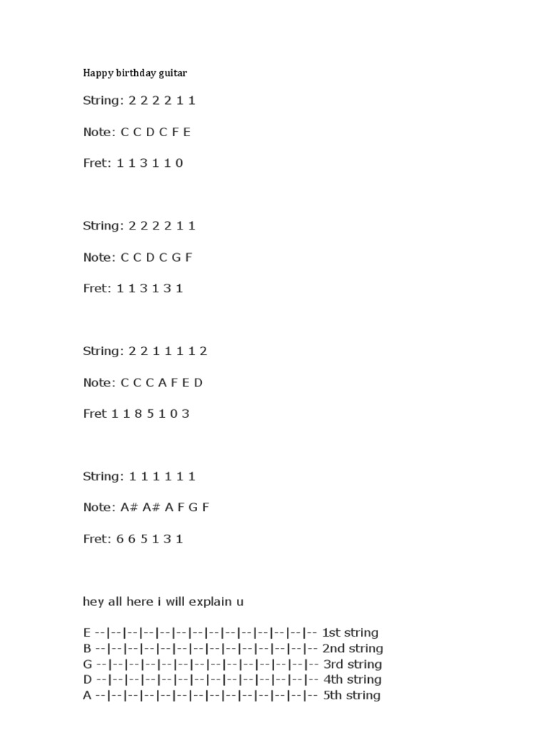 Happy Birthday Guitar Chords Tabs Notes For Solo Instrument